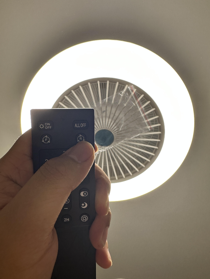 선풍기에 현재 비닐 하나가 딱 붙어 있는게 보이나요?